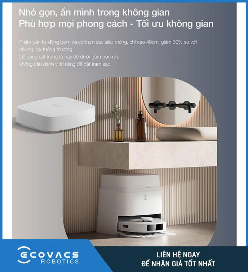 - Trạm Mini OMNI thế hệ mới – tự động giặt khăn bằng nước nóng 70°C, sấy khô, đổ rác, cấp/xả nước hoàn toàn tự động, giảm 30% diện tích chiếm chỗ.