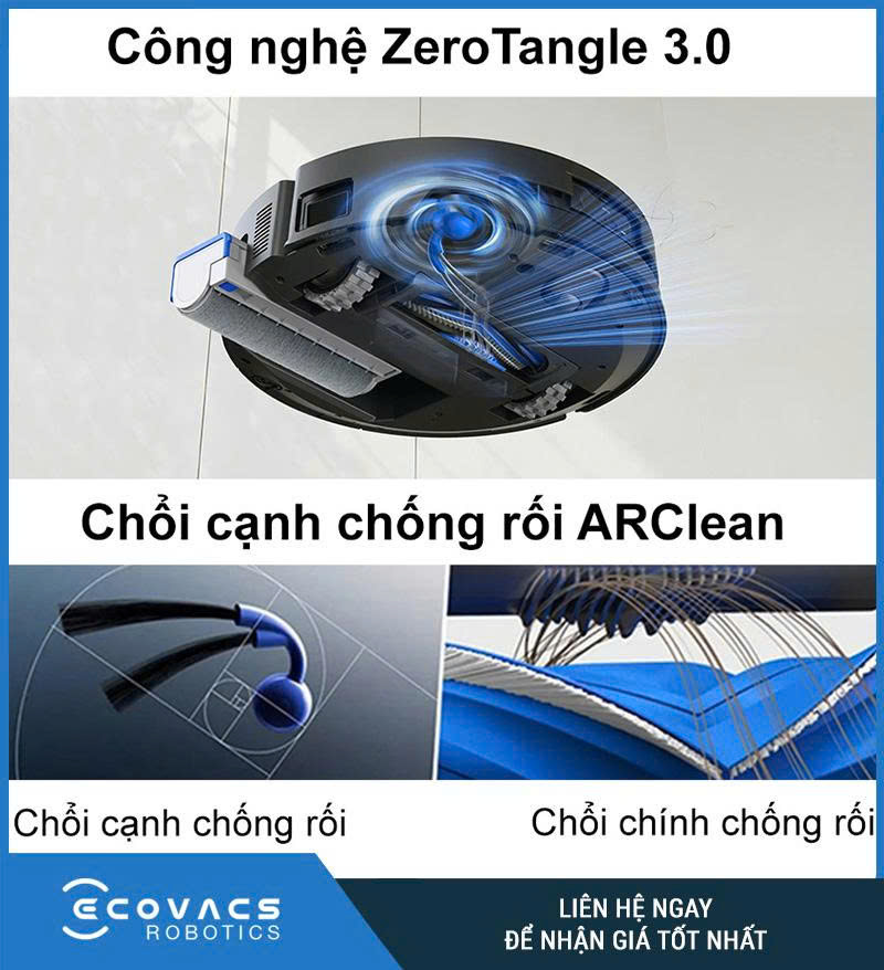 Người dùng thường khó chịu khi tóc và lông thú cưng quấn vào chổi, gây giảm hiệu suất và tốn thời gian vệ sinh. Roborock Ecovacs‑Deebot X9 Pro giải quyết vấn đề này bằng ZeroTangle 3.0. Chổi chính hình chữ V với thiết kế răng cưa kết hợp chất liệu cao su và sợi nylon mềm giúp giảm xoắn tóc tới 95 % so với robot đời cũ. Khi quay về trạm OMNI, robot còn rung để rũ sạch tóc khỏi chổi. Chổi cạnh ARClean có góc xoay rộng giúp quét bụi sát mép tường, góc tủ, chân bàn ghế và các khe hẹp – những nơi các robot khác thường bỏ sót.