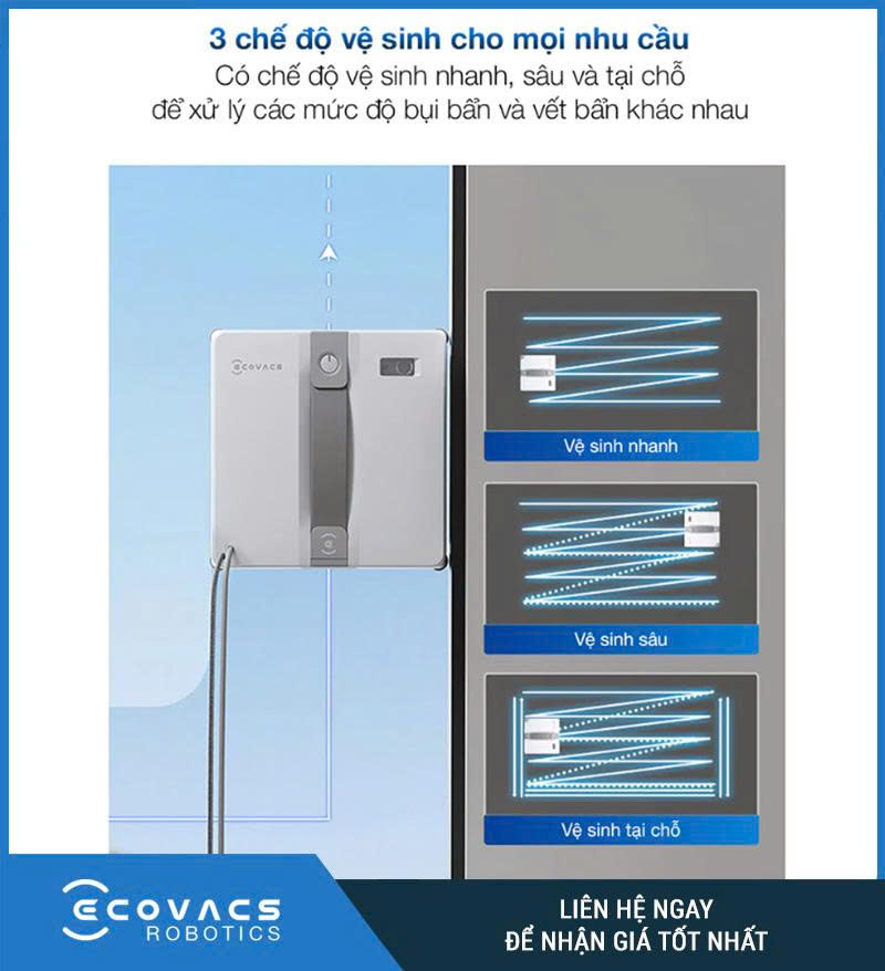 Winbot‑Mini hỗ trợ ba chế độ làm sạch: