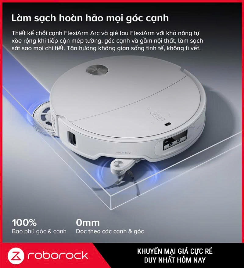 - Làm sạch toàn diện, sát mép: Kết hợp chổi FlexiArm và hệ thống lau xoay giúp robot quét sạch các cạnh tường, góc khuất và vết bẩn cứng đầu.