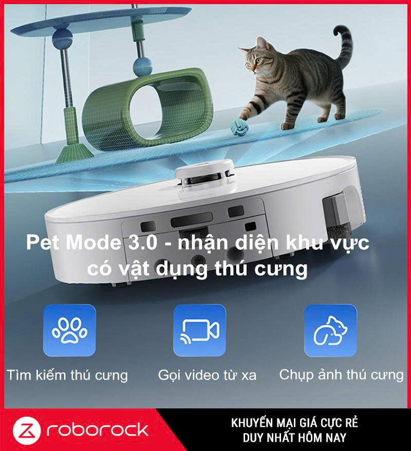 Gia đình có thú cưng thường phải quét lông nhiều lần trong ngày. Chế độ Pet Mode 3.0 sử dụng AI nhận diện khu vực thú hay nằm để tăng lực hút và lưu lượng nước.. Bộ lọc HEPA kháng khuẩn giữ lại tới 99,97 % bụi mịn và phấn lông., giảm dị ứng cho trẻ nhỏ. DuoDivide® và hệ thống bàn chải cạnh giúp thu gom lông mà không bị rối.. Đặc biệt, robot hoạt động êm ái, không gây sợ hãi cho thú nuôi.