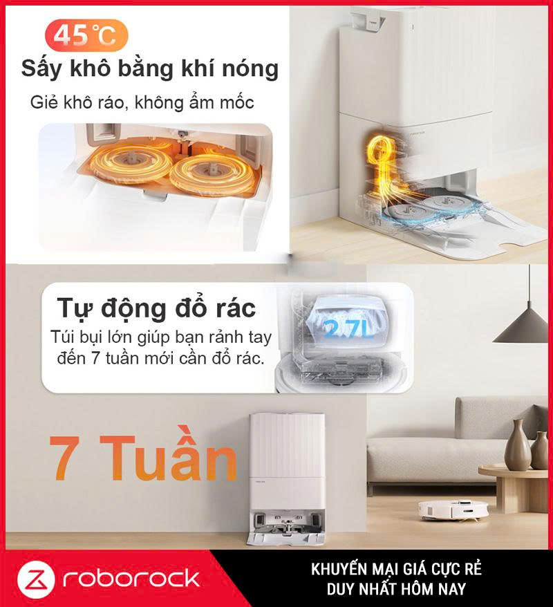 | Tự đổ rác | Túi bụi ~2,7 L (tay rảnh tới ~7 tuần) |