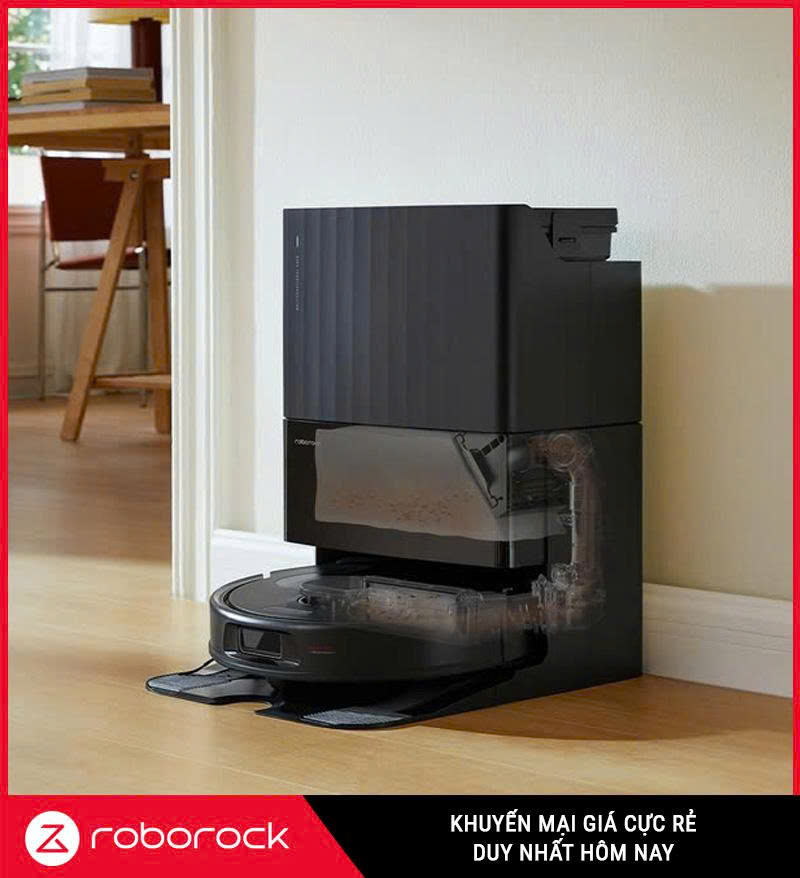 Robot sẽ quay về dock khi thùng bụi đầy hoặc khi pin yếu. Trạm sẽ hút bụi vào túi rác lớn và tự động giặt giẻ, sau đó sấy bằng luồng gió ấm, giữ cho khăn lau khô ráo và sạch sẽ.. Công nghệ này giúp bạn không phải tiếp xúc với bụi bẩn, đồng thời kéo dài tuổi thọ giẻ lau.