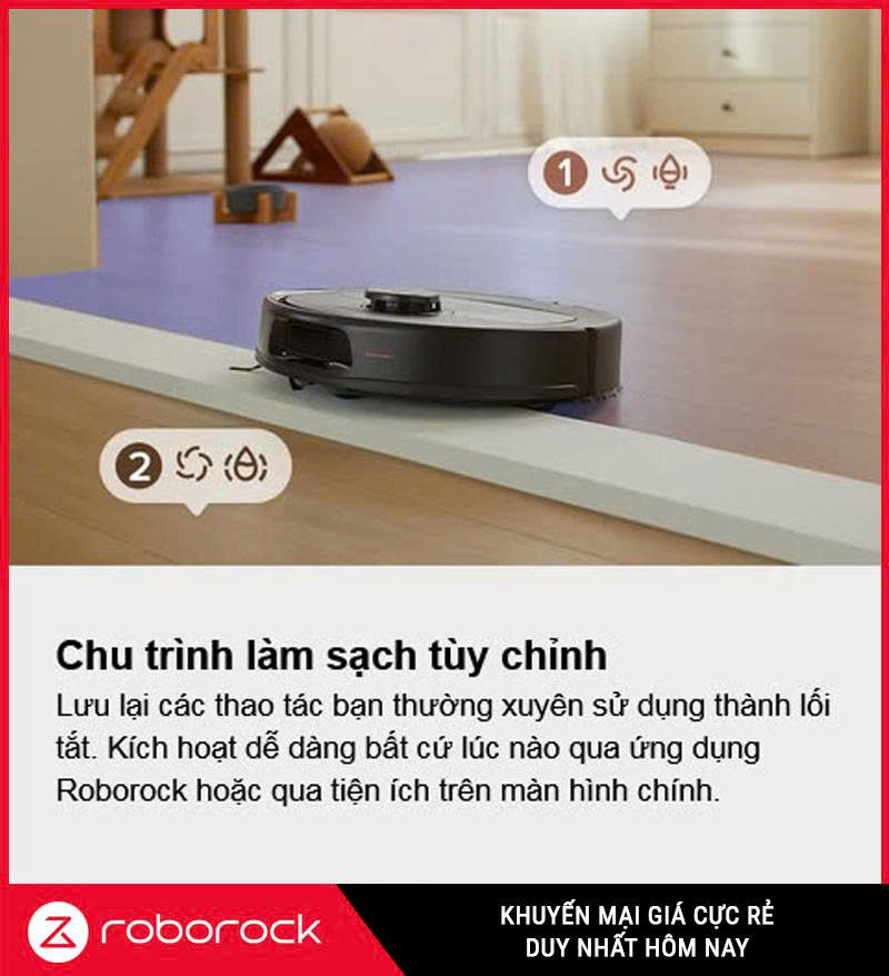 Ứng dụng Roborock bằng tiếng Việt giúp bạn lên lịch lau hút, khoanh vùng cấm và xem bản đồ 3D. Tính năng SmartPlan sử dụng AI phân tích môi trường để tự động đề xuất trình tự và phương thức làm sạch.. Bạn có thể tạo rutine tùy chỉnh cho từng phòng hoặc sử dụng chế độ Temp Cleaning để xử lý nhanh vết bẩn mà không ảnh hưởng lịch trình.. Robot cũng hỗ trợ điều khiển bằng giọng nói qua Google Assistant, Alexa hoặc Siri..