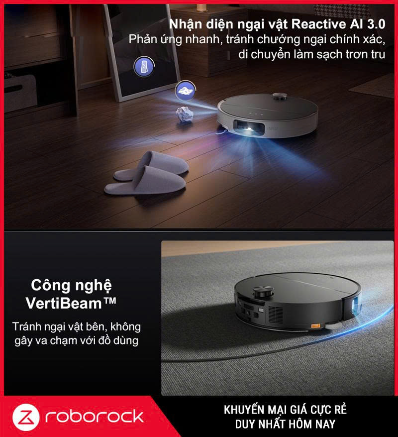 - Điều hướng thông minh Reactive AI 3.0 + LiDAR – nhận diện chính xác đồ vật, tránh va chạm, lập bản đồ nhanh và chuẩn.