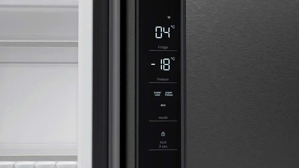 Được tích hợp công nghệ Home Connect, tủ lạnh Bosch KFN96AXEA cho phép bạn kết nối Wi‑Fi để điều khiển từ xa qua smartphone hoặc tablet. Thông qua ứng dụng, bạn có thể điều chỉnh nhiệt độ, bật chế độ SuperCooling, nhận cảnh báo khi cửa tủ mở quá lâu hoặc có sự cố . Đây là tính năng thông minh đang dần trở thành chuẩn mực của tủ lạnh cao cấp.