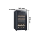 Ấn tượng đầu tiên về Munchen MW160PRO chính là kiểu dáng mini nhỏ gọn nhưng vẫn toát lên sự sang trọng đẳng cấp. Tủ rượu có chiều rộng chỉ 36 cm, cao 66 cm nên linh hoạt khi bố trí trong nhà - bạn có thể đặt nó ở phòng khách, phòng bếp hay quầy bar gia đình mà không chiếm nhiều diện tích. Phần vỏ tủ là thép sơn tĩnh điện màu đen kết hợp cửa kính trong suốt 3 lớp chống tia UV, vừa bảo vệ rượu khỏi ánh sáng, vừa cho phép khoe khéo những chai rượu quý giá trị bên trong. Tay nắm cửa của tủ được thiết kế chắc chắn, đồng thời hài hòa về thẩm mỹ, góp phần tôn thêm nét thanh lịch cho không gian.