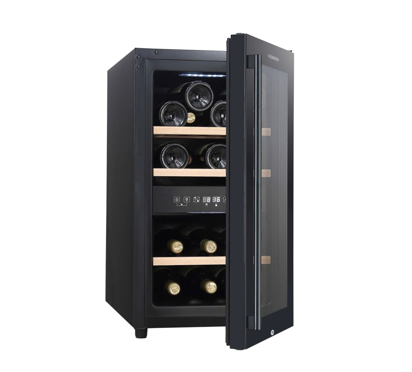 Munchen MW160PRO là mẫu tủ ướp rượu vang hiếm hoi trong phân khúc mini được trang bị 2 vùng nhiệt độ riêng biệt. Bạn có thể cài đặt nhiệt độ độc lập cho tầng trên và tầng dưới tùy vào từng loại rượu. Với khoảng nhiệt linh hoạt từ 5°C đến 22°C mỗi ngăn, tủ này phù hợp để bảo quản đồng thời nhiều dòng vang khác nhau. Chẳng hạn, bạn có thể để vang trắng ở ngăn trên với nhiệt độ mát hơn (khoảng 12°C) trong khi vang đỏ ở ngăn dưới với nhiệt độ ấm hơn (15-18°C). Mỗi ngăn đều có bảng điều khiển cảm ứng để thiết lập nhiệt độ chính xác và theo dõi dễ dàng. Đặc biệt, hệ thống quạt đối lưu sẽ phân phối khí lạnh đều khắp các kệ, giúp nhiệt độ bên trong tủ ổn định - không có tình trạng phía trên quá ấm hay đáy quá lạnh.