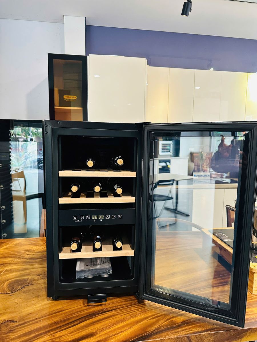 “Tủ Bảo Quản Rượu Vang Munchen MW616DZ” là dòng tủ rượu hai vùng nhiệt độ dành cho gia đình, quán bar nhỏ hoặc những người yêu vang đang tìm một giải pháp lưu trữ chuyên nghiệp. Với dung tích khoảng 50 lít và sức chứa 16 chai tiêu chuẩn, MW616DZ cho phép bạn duy trì điều kiện bảo quản tối ưu mà vẫn tiết kiệm không gian. Thiết kế cửa kính ba lớp trong suốt với viền đen sang trọng giúp khoe khéo bộ sưu tập vang mà vẫn chặn được tia UV, bảo vệ hương vị của rượu. Lõi tủ được xử lý bằng thép bền bỉ, kết hợp kệ gỗ sồi châu Âu đem lại vẻ đẹp ấm áp và khả năng chịu lực tốt.