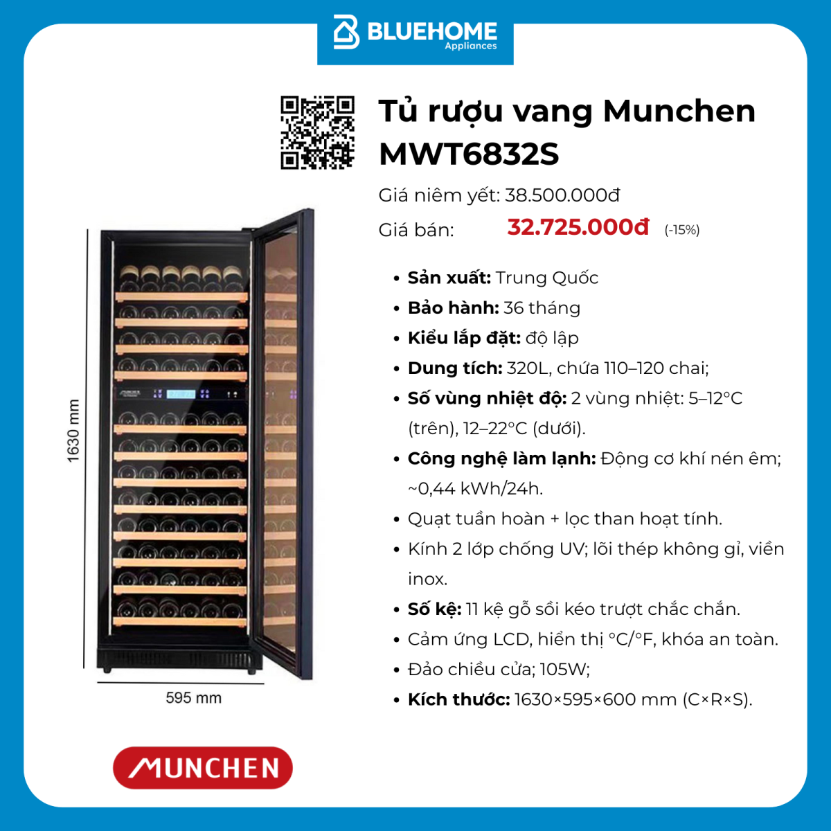 Tại Sao Chọn Tủ Rượu Vang Munchen MWT6832S Tại BlueHome?