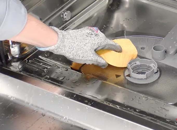Khoang máy (lồng máy) là khu vực bên trong nơi bạn đặt bát đĩa để máy rửa sạch. Sau thời gian sử dụng, khoang máy có thể bám bẩn hoặc ám mùi, do vậy cũng cần được vệ sinh định kỳ. Bạn có thể làm sạch khoang máy rửa bát theo các bước cơ bản như sau: