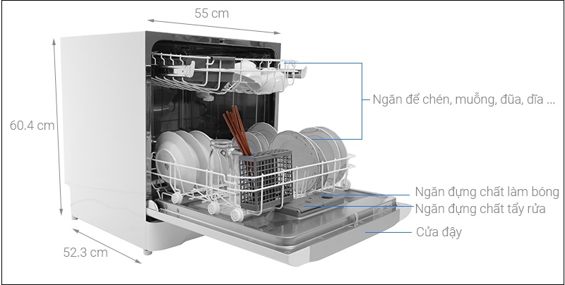Kích thước tiêu chuẩn máy rửa bát 8 bộ