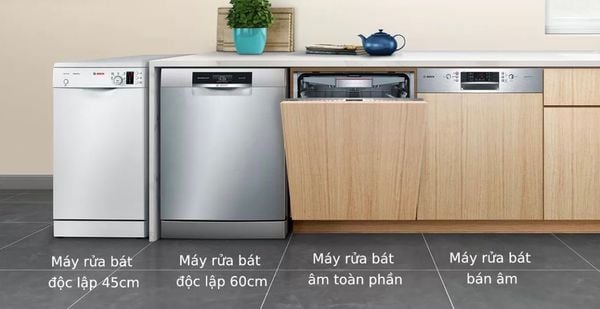 Như đã đề cập, máy rửa bát gia đình có thể chia làm ba loại chính: độc lập, âm tủ và để bàn (mini). Mỗi loại có thiết kế và cách lắp đặt khác nhau, phù hợp với từng nhu cầu sử dụng. Dưới đây là bảng so sánh nhanh về ưu điểm và hạn chế của từng loại máy: