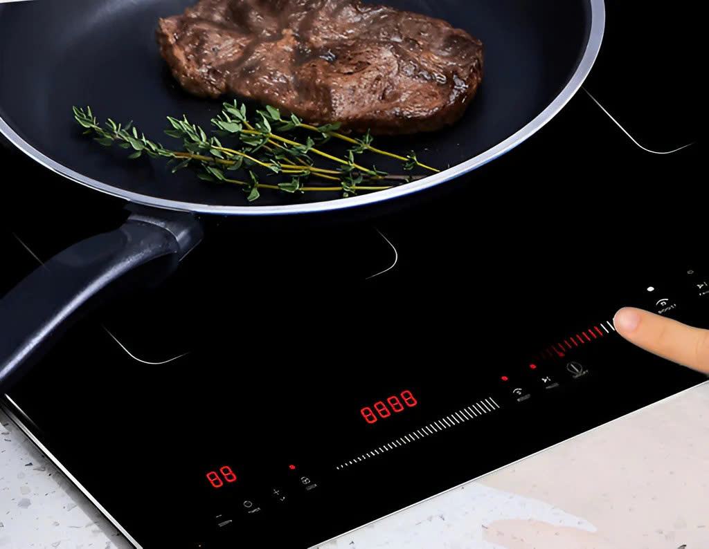 Minh họa: Bếp từ đôi Hafele với thiết kế mỏng, sang trọng (hình minh họa). Hãy sử dụng nồi chảo chuyên dụng, đậy nắp kín khi đun nấu để tiết kiệm thời gian và điện năng.