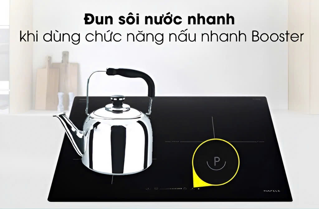Boost/P (tăng công suất nhanh): Nhiều model bếp từ Hafele có nút Boost (ký hiệu P). Bấm nút này khi đã chọn vùng nấu để đẩy công suất lên mức cao nhất trong thời gian ngắn. Chức năng Boost cho phép tăng thêm ~50% công suất, giúp đun sôi hoặc hầm nhanh hơn. Tuy nhiên, chức năng này chỉ hoạt động tối đa ~10 phút để bảo vệ nồi và bếp, sau đó bếp sẽ tự động quay về mức 9 bình thường.