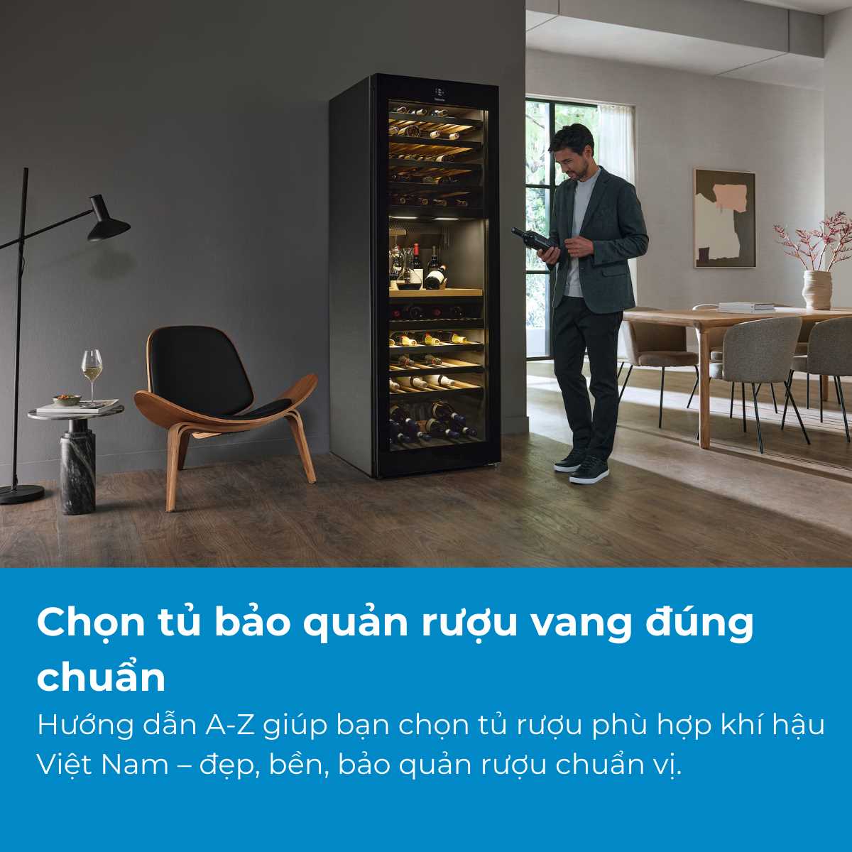 Kết luận: Việc chọn mua một chiếc tủ bảo quản rượu vang phù hợp cho gia đình đòi hỏi bạn cân nhắc kỹ lưỡng từ nhu cầu, không gian, loại rượu đến ngân sách. Hy vọng rằng qua hướng dẫn trên, bạn đã nắm được những kiến thức cần thiết như một chuyên gia rượu vang tại gia – từ cách xác định dung tích, hiểu rõ ưu nhược điểm tủ độc lập hay âm tủ, tủ 1 vùng hay 2 vùng nhiệt độ, cho đến các tính năng không thể bỏ qua. Một chiếc tủ rượu vang tốt không chỉ bảo đảm những chai vang yêu quý của bạn luôn ở trạng thái hoàn hảo nhất mà còn góp phần nâng tầm không gian sống, thể hiện phong cách thưởng thức tinh tế của gia chủ.
