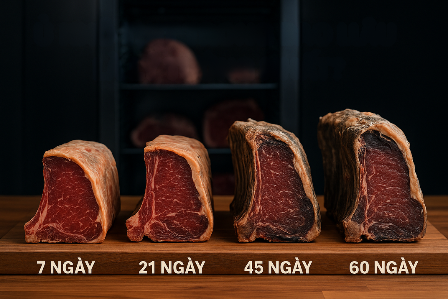Bạn đã nghe về thịt bò dry-aged (thịt bò ủ khô) – bí quyết tạo nên những miếng beefsteak thượng hạng mềm như bơ, thơm ngậy đậm đà. Bạn háo hức ủ thịt tại nhà trong tủ ủ thịt chuyên dụng nhưng phân vân: “Khi nào thì biết thịt đã ‘đạt’, sẵn sàng kết thúc quá trình ủ?” Đây là thắc mắc chung của nhiều người mới bắt đầu. Đừng lo, chúng ta sẽ cùng tìm hiểu các dấu hiệu rõ ràng nhất để nhận biết thịt ủ khô đã hoàn hảo và sẵn sàng đem ra chế biến món ngon. Bài viết được viết với phong cách gần gũi, dễ hiểu, giúp bạn – dù là người mới – cũng nắm vững kiến thức một cách tự tin.