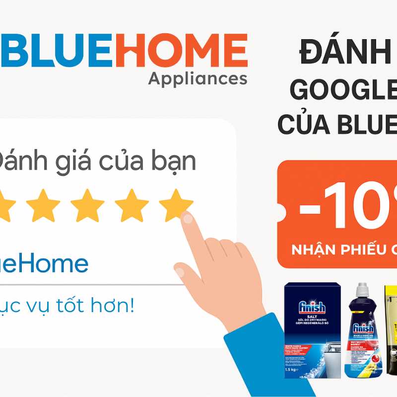 Sau khi hoàn tất đánh giá, hãy chụp màn hình lại phần đánh giá vừa đăng và gửi tin nhắn qua Zalo (https://zalo.me/bluehome) hoặc Fanpage BlueHome (https://www.facebook.com/bluehome.fanpage) để nhận ngay phiếu giảm giá 10% (tối đa 100.000đ) cho đơn hàng tiếp theo.