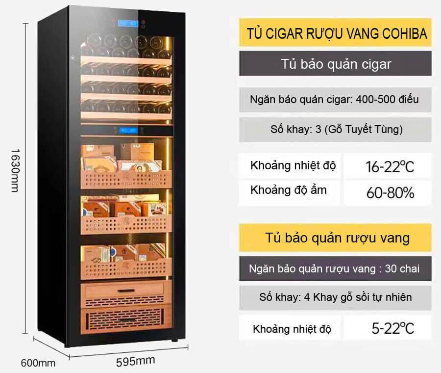 | Phân loại | Tủ bảo quản Cigar & Rượu vang (2 khoang độc lập) |