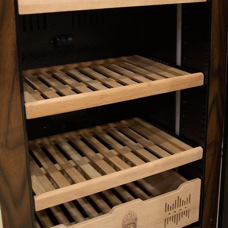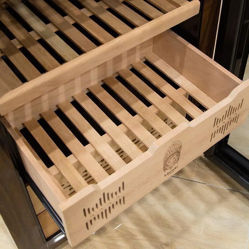 So với nhiều dòng tủ mini, Lubinski LB9804 chứa được khoảng 400 – 450 điếu cigar tùy kích thước. Bên trong có 4 khay làm hoàn toàn từ gỗ Tuyết Tùng Tây Ban Nha – loại gỗ được ưa chuộng vì khả năng giữ ẩm tự nhiên, hương thơm nhẹ và kháng nấm mốc. Dung tích rộng rãi phù hợp với người sưu tầm trung cấp đến chuyên nghiệp muốn lưu trữ nhiều dòng cigar khác nhau.