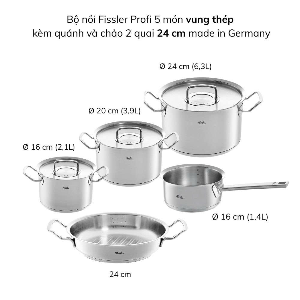 Bộ nồi Fissler Profi 70113 bao gồm 5 món đa dạng: