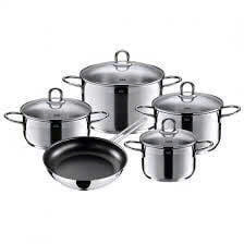 Bộ nồi SILIT Toskana 0070027 gồm 4 nồi inox kèm vung kính và 1 chảo chống dính, đáp ứng hầu hết nhu cầu nấu ăn hằng ngày:
